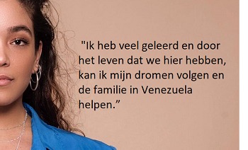 Nederland is voor een buitenlander niet makkelijk. Je krijgt veel kansen maar vooral in het begin wordt alles goed dichtgetimmerd. Mijn moeder en ik zijn echt door een moeilijke periode gegaan. Ik was 15 jaar toen we naar Nederland kwamen en ik moest ineens volwassen worden. Ik moest mee naar alle afspraken bij de gemeente, bank noem maar op. Ik werd ineens mijn moeders gelijke en moest soms zelfs voor haar zorgen. Op dat moment was dat ook meer dan normaal. Maar het was achteraf een te grote verantwoordelijkheid en het zorgde voor een innerlijke weerstand voor bepaalde dingen waar ik soms nog moeite mee heb. Maar nu ben ik blij. Ik heb veel geleerd en door het leven dat we hier hebben, kan ik mijn dromen volgen en de familie in Venezuela helpen.”