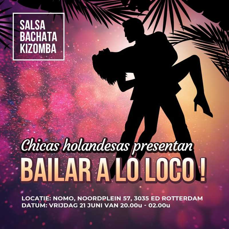 We zien jullie graag op ons eerste feest: BAILAR A LO LOCO! dat plaatsvindt op vrijdag 21 juni 2019, Noordplein 37, Rotterdam.