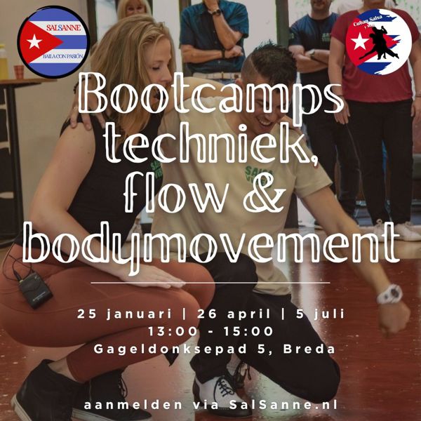 Ook in 2026 organiseren Cuban Salsa y Mas en SalSanne bootcamps over: Techniek, flow en bodymovement.