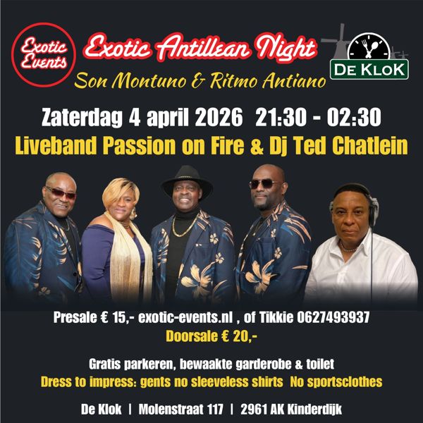 Exotic Antillian Night @ De Klok, Molenstraat 117, Kinderdijk
