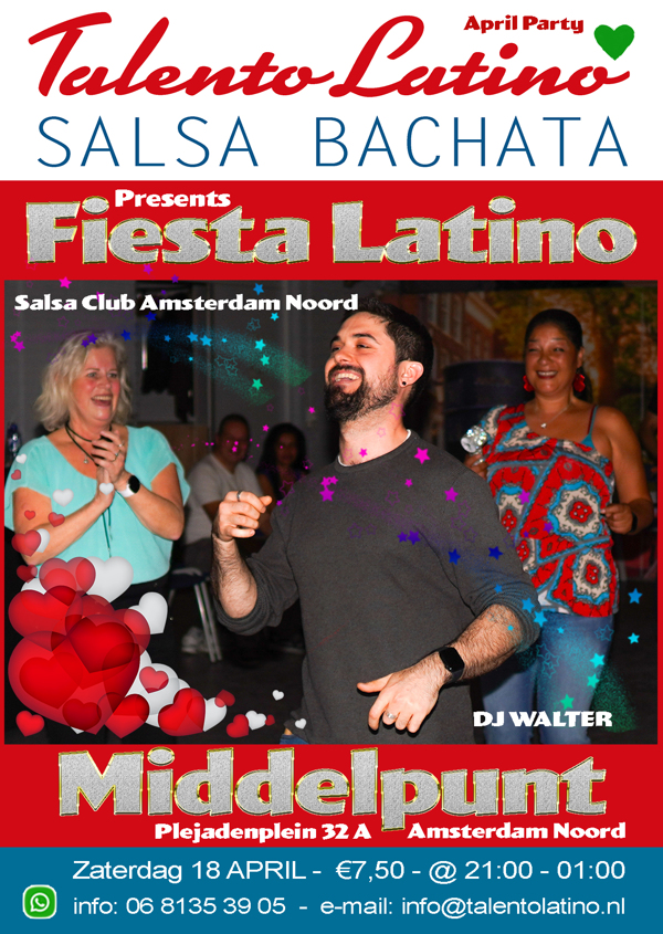 Aanstaande zaterdag maken we er weer een heerlijke, gezellige Latin dansavond van in Het Middelpunt (Tuindorp Oostzaan, Amsterdam-Noord).