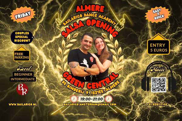 Salsa classes at Almere, Green Central on 27 March (Friday) from 19:00-21:00.