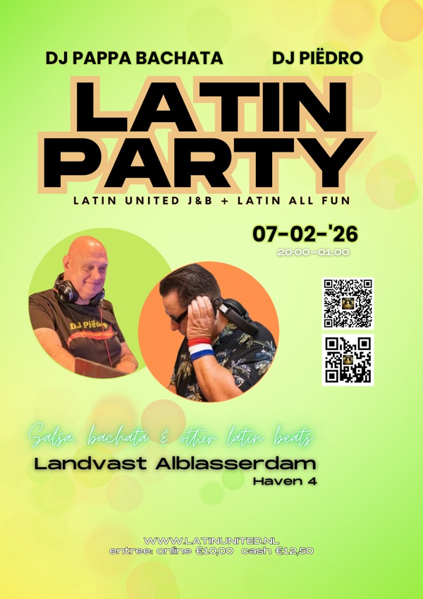 Latin United J&B en Landvast te Alblasserdam organiseren zaterdag 7 februari nu in 1 zaal een daverende Latin party .
