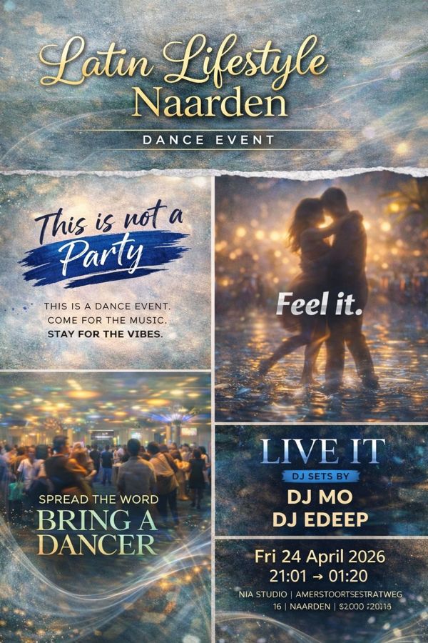 Vr 24 apr 2026: Latin Lifestyle Naarden * GOOD VIBE ! ! ENTRANCE 21:01- 21:15 €8 in 1411 Hd Naarden