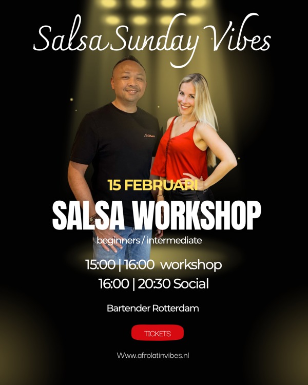 Om 16:00 social Salsa, Bachata, kizomba en een gratis drankje bij aankomst!