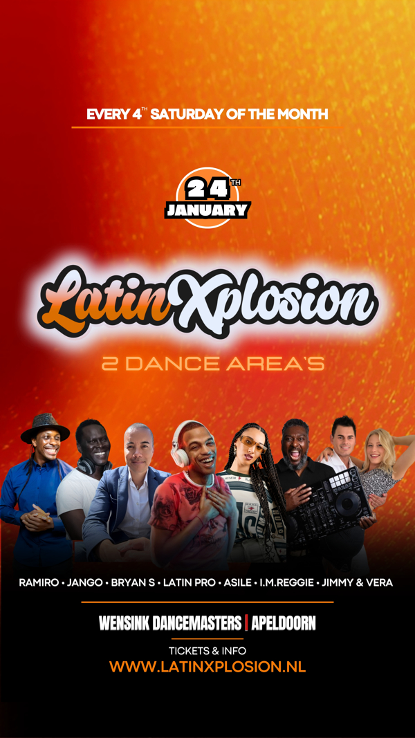 Op zaterdag 24 januari 2026 vind LATIN-X-PLOSION plaats te Wensink in Apeldoorn.