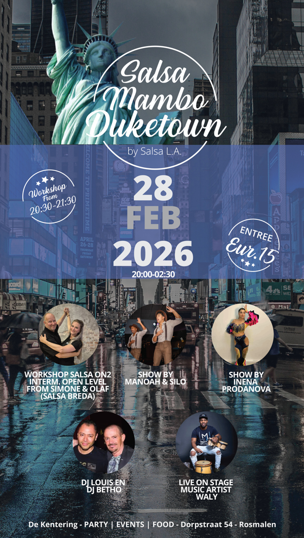 Mark February 28th in your calendars and come to De Kentering in Rosmalen for a fantastic Mambo Duketown Night! A fantastic evening for mambo enthusiasts, from beginners to advanced, with salsa, mambo, cha cha, and classic romantica music!