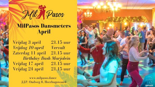 Vrijdag 24 april organiseren we, zoals iedere vrijdag, weer de MilPasos Dansmeters!