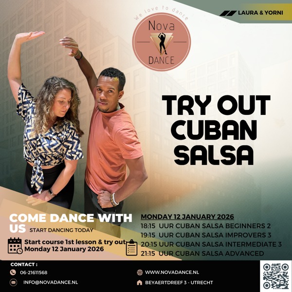 Nova Dance start op maandag 12 januari met een nieuw dansseizoen voor Cubaanse Salsa.