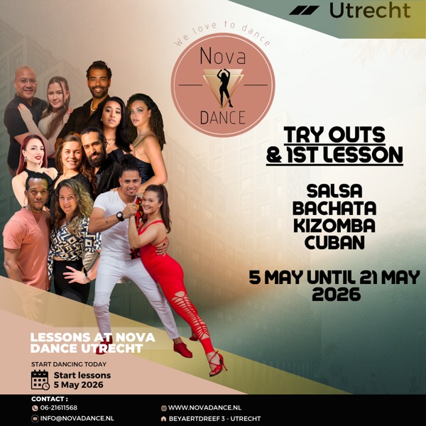 Di 5 mei 2026: Proeflessen en start reguliere lesweek: Cubaanse Salsa, Bachata Dominican, Influence, Sensual, Semba, Kizomba & Salsa LA in Utrecht