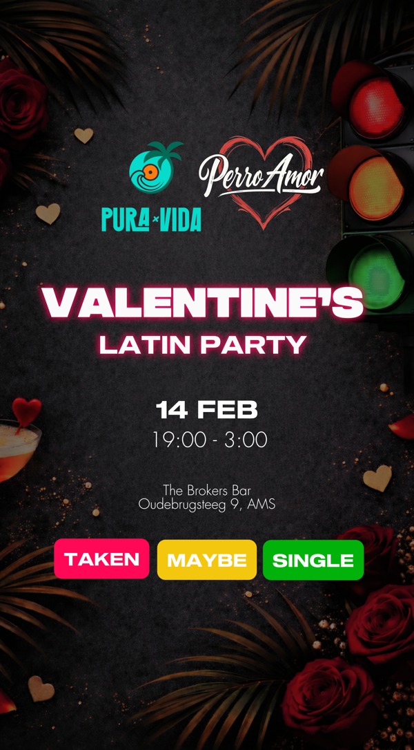 Za 14 feb 2026: PURAxVIDA & Perro Amor: Valentine`s Latin Party in Amsterdam