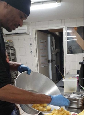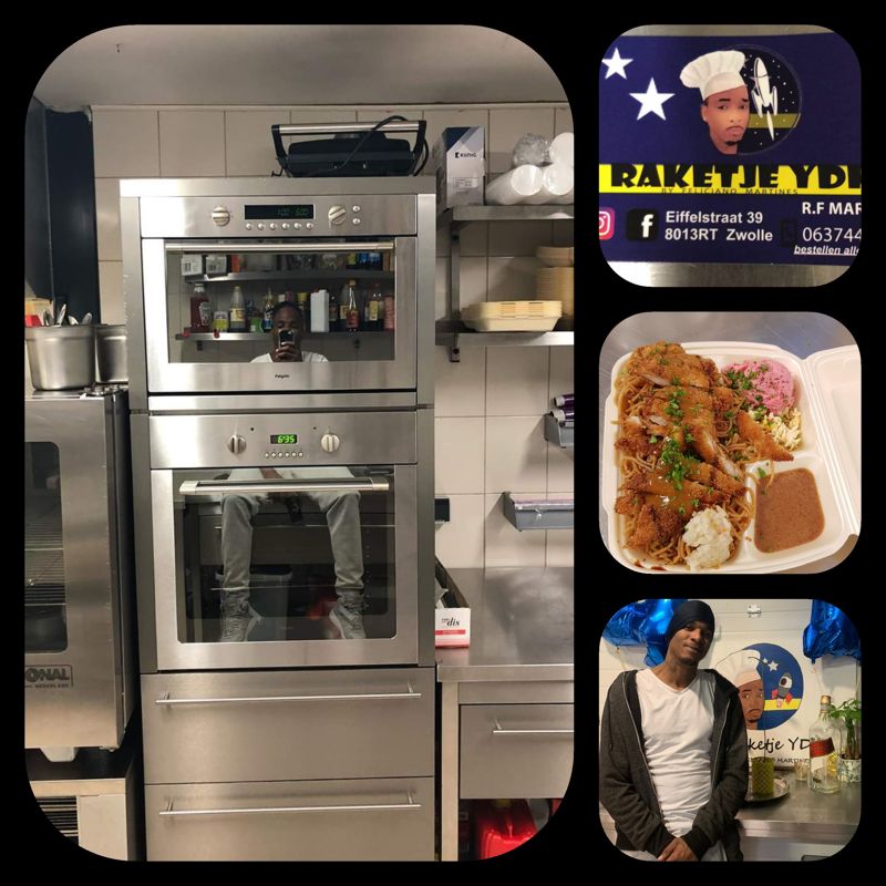 Vroeg heel vroeg, voorbereidingen treffen voor die dag. Ik denk na wat ik ga koken, wat mensen willen en zo. Mensen zijn gek op mijn specialiteiten: saté ku batata en chicken of shrimps cutlet. Mensen komen soms van ver om dit te komen eten. Mensen vinden me via sociale media, bellen en komen bij mij eten halen. Mijn grootste klantenkring zijn de vrouwen. Die weten me te vinden. Voorheen deed ik dit vanuit huis. Eerst woonde ik Amsterdam en later verhuisde ik naar Zwolle. Elf februari 2020 woon ik precies een jaar hier. Zwolle is lekker centraal en er is weinig concurrentie op dit gebied.